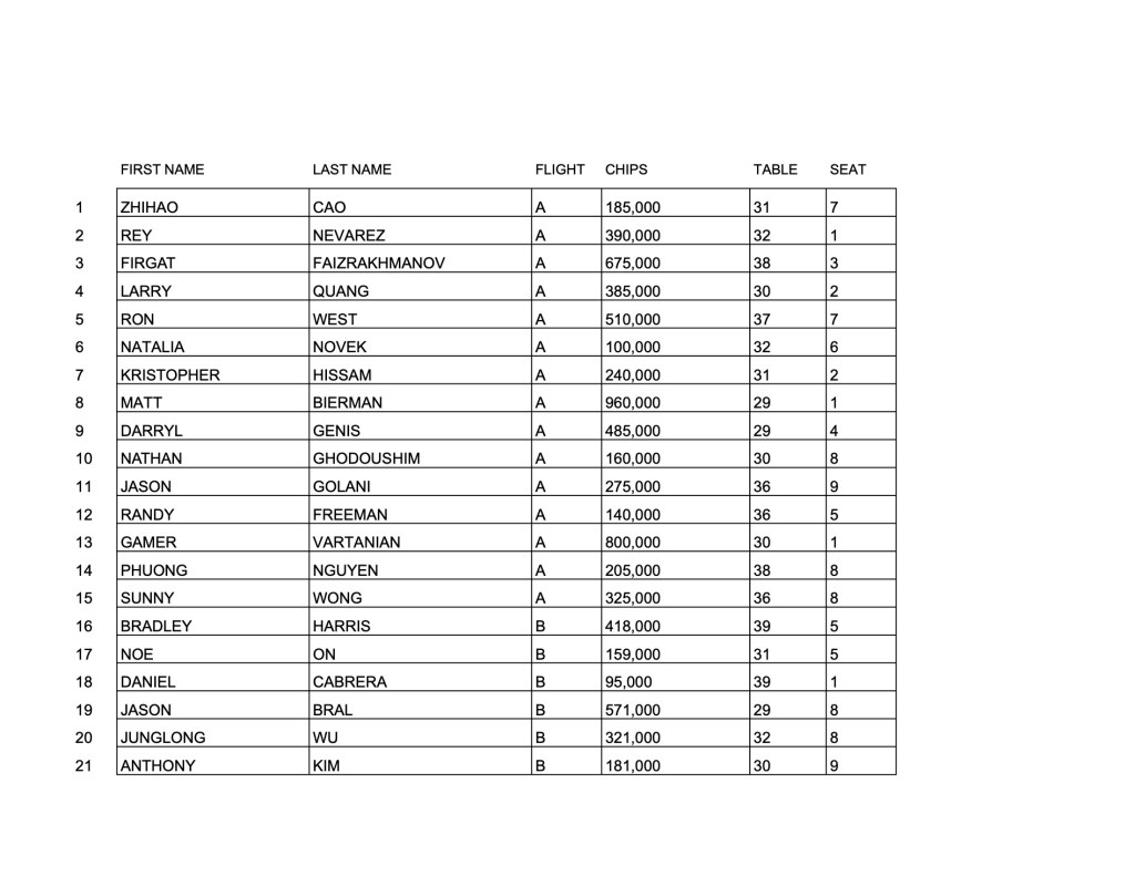 Below you will see the 44 players who have qualified for the Day 2 finals of the Mystery Bounty Event, based on the days that they qualified. Remember that we have one more flight left tomorrow, starting up at 4 PM, so if your name isn’t on this list, make sure you come join us!