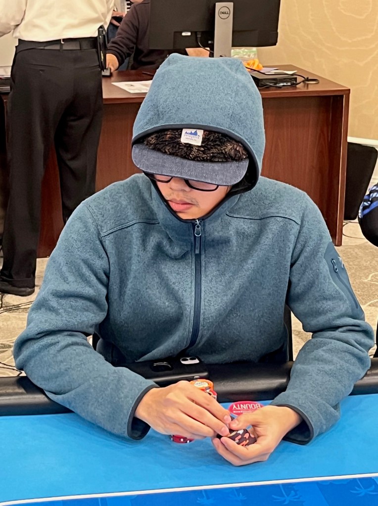 Habib kept his foot on the gas with a bet of 2,100,000, just under half of Hutton’s stack, and he once again called to see the [7s] come on the river. Habib casually tossed his bounty chip in to signify an all in bet, and Hutton let out a big sigh, but eventually he found the call with [Jc][10c].
