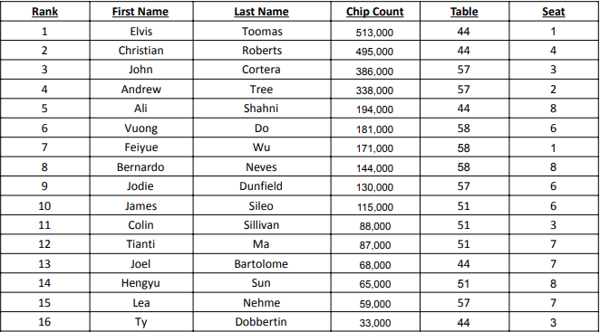 Also advancing last night were Vuong Do, James Sileo, and Ty Dobbertin. Check out the full list below, and remember that our second $1,100 flight starts up today at 11 AM!