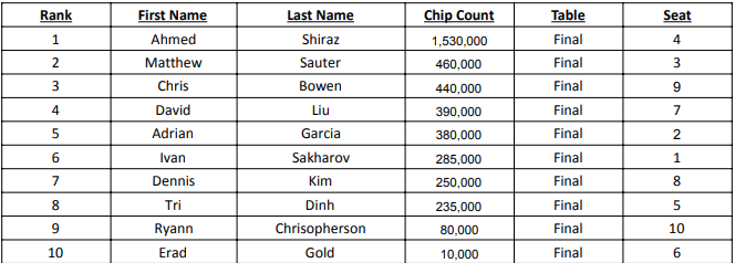 Just 10 players are returning for the Day 2 finals of the Pot Limit Omaha Event, where Ahmed Shiraz holds a big lead over the rest of the competition.
