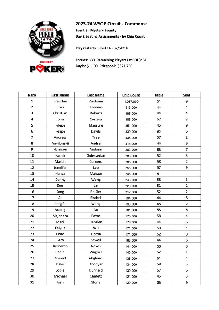 As we reported last night, Brandon Zuidema bagged up a massive lead over the rest of the 51 player field in our Mystery Bounty Event, with over a million in chips.