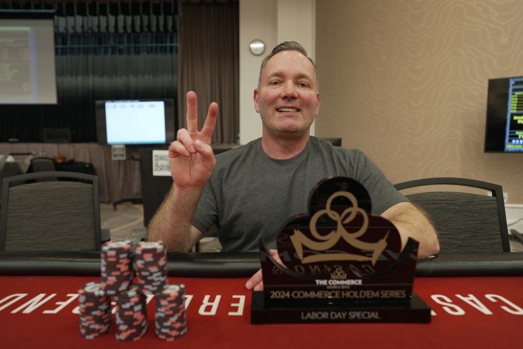 After a long and exciting labor day, our final 6 players agreed to a chop with 1st place going to Michael Dollins of Los Alamitos, CA taking home top payout of $32,000