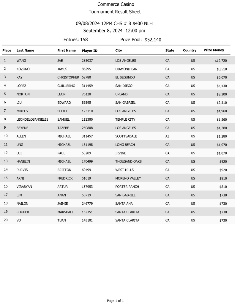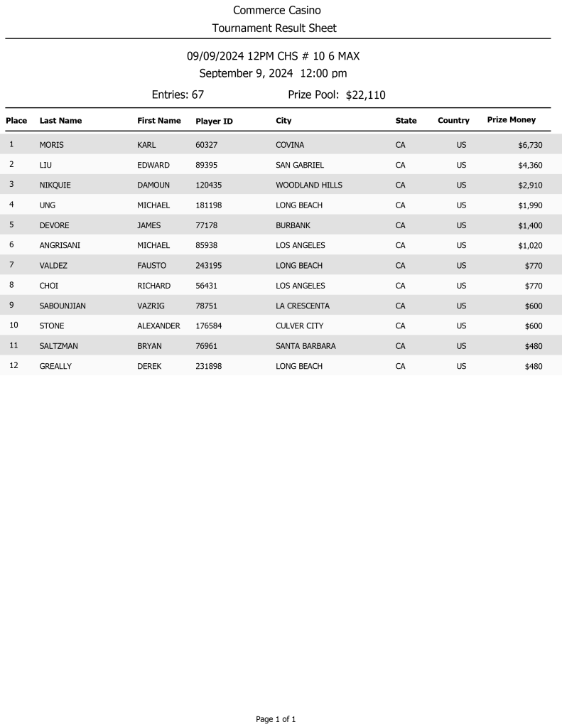 HERE ARE THE RESULTS FROM OUR $400 NLH, PLO AND 6 MAX NLH EVENTS