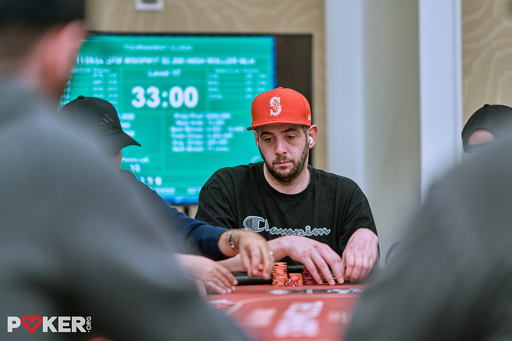 The board ran down [Qh][7d][3c][4s][9c], and the tens held to get us to four handed.