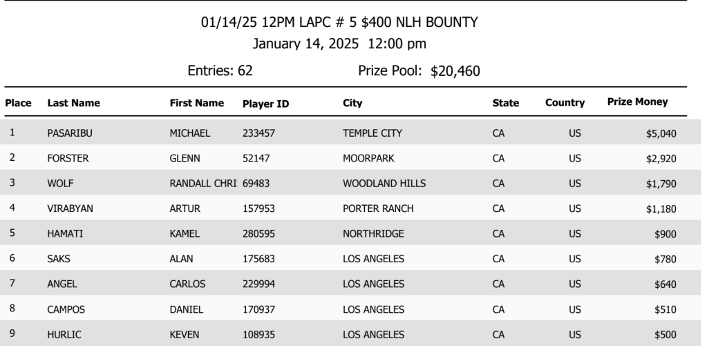 Yesterday also saw 62 players come out for the $400 bounty event, which made for a final prizepool of over $20,000. Michael Pasaribu took hme just over $5,000 for the victory, along with the bounties he was able to claim along the way.
