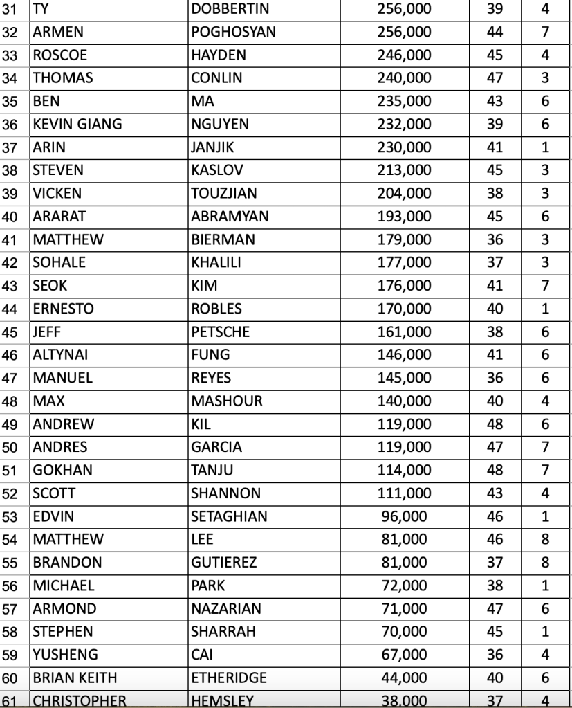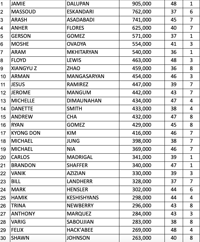 Going into the final day of qualfying, we have 61 players who have advanced to the Day 2 finals of the XL Bounty. Jamie Dalupan is the chip leader with 905,000, but right behind him is one of the most seasoned veterans of the Commerce Casino: Mike Eskandari! (pictured above.