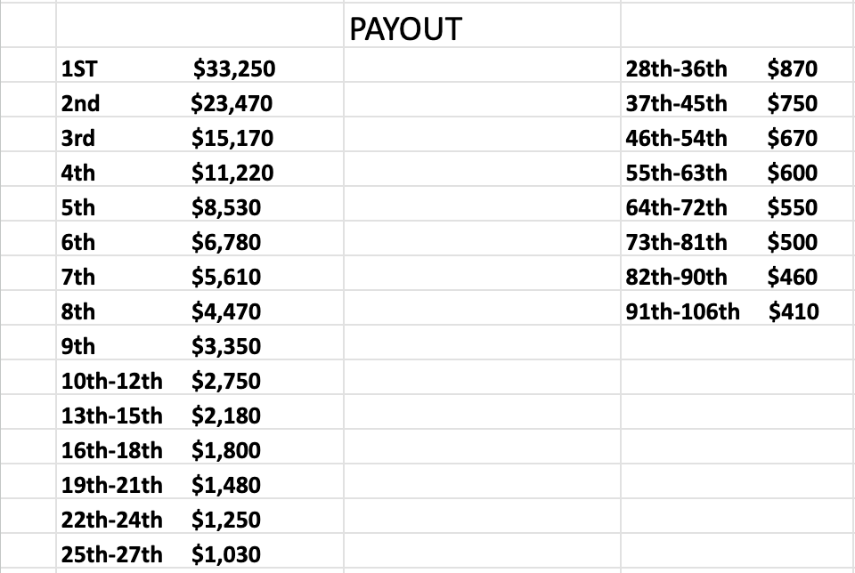 Below you will see the full payouts for today’s Day 2 restart. Everyone coming back has locked up $410, but that can quickly turn into $1,910 with just one elimination today, so the action should be packed!
