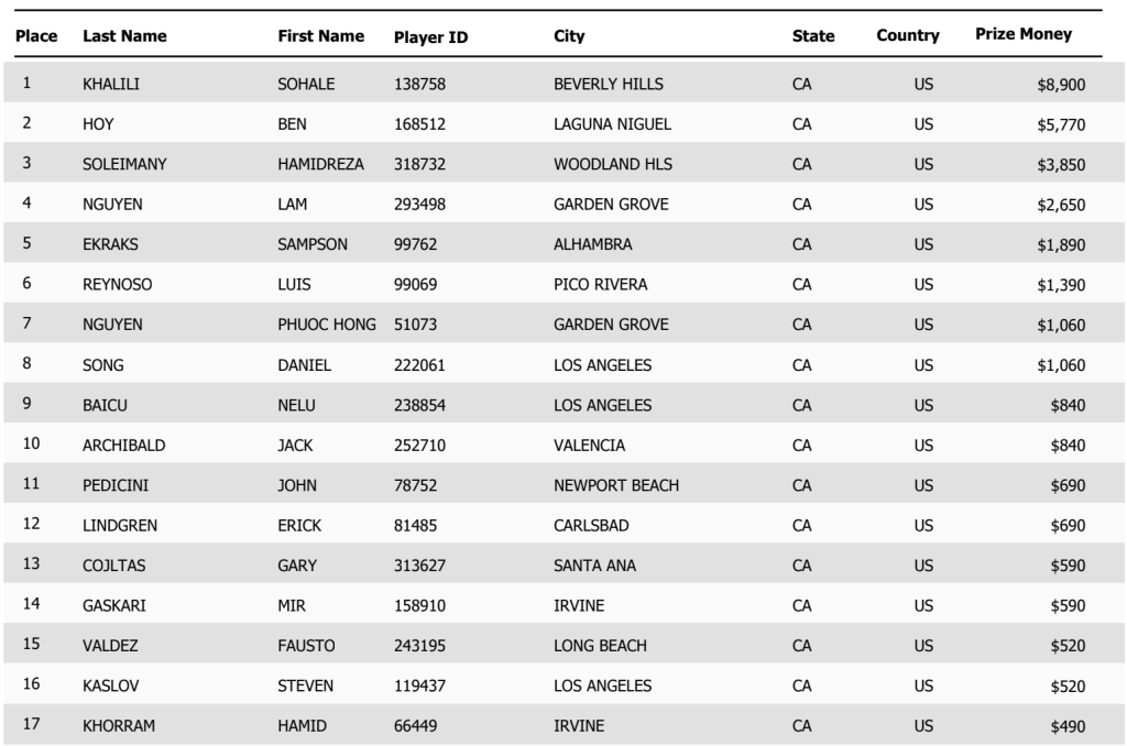 Check below for the full payouts from the event, and congrats to all who cashed!