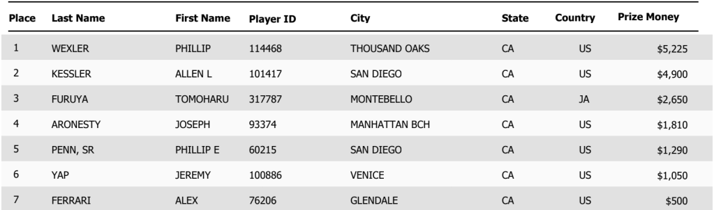 41 Mixed Game specialists came out for our latest Non-Hold’em Event yesterday, and Phillip Wexler denied Allen Kessler the title after a heads up deal was made. Wexler earned $5,225 for his efforts, while David Brookshire made another final table, but finished short of the money in this one.