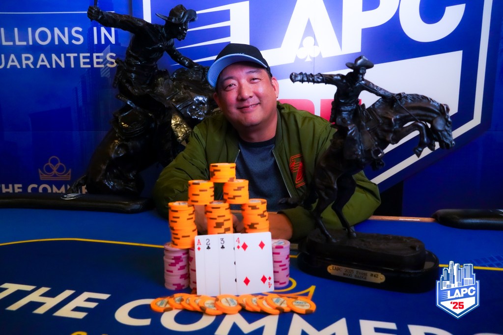 The final table of yesterday’s Badugi Event was absolutely stacked, with players who have already made a final table this series. The top three have all claimed Remingtons already this series, with Adam Kipnis finishing 3rd, and Ari Engel as runner up. In the end, it was Steve Hyung who finished on top, earning his second trophy of the series, and $7,535 to go with it.