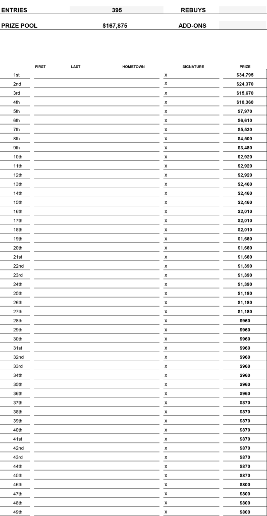 Live Schedule for the 2025 WSOPC Stop
