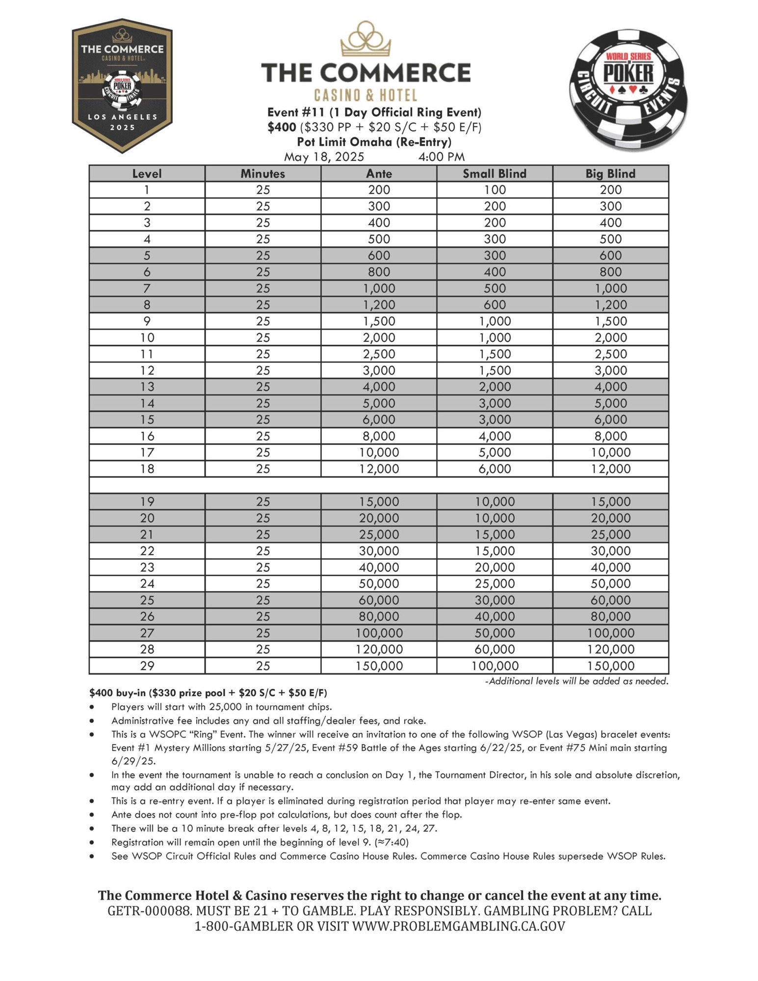 GETR-000088. THE COMMERCE CASINO & HOTEL RESERVES THE RIGHT TO CHANGE OR CANCEL THE EVENT AT ANY TIME. MUST BE 21+. PLAY RESPONSIBLY. PROBLEM GAMBLING? CALL 1-800-GAMBLER OR VISIT WWW.PROBLEMGAMBLING.CA.GOV